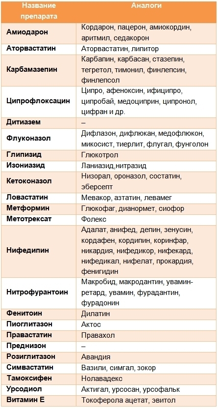 К числу наиболее известных препаратов, способных вызвать повышение уровня АЛТ, относятся: