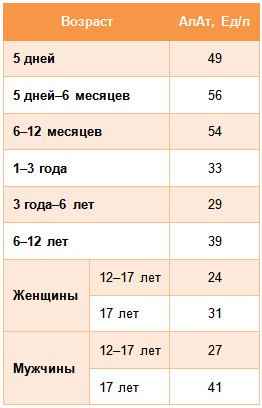 С 1 до 3 лет нормальный уровень АЛТ составляет 33 Ед/л, и с возрастом этот показатель постепенно снижается.
