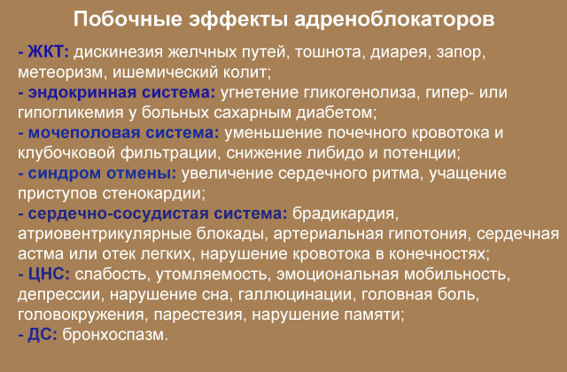Как и любые медикаменты, блокаторы адренорецепторов могут иногда вызывать побочные эффекты, среди которых: