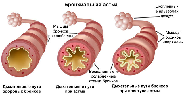 - сужение бронхов;