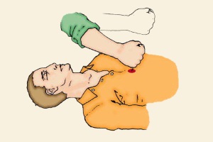 Прекардиальный удар используется как альтернатива дефибрилляции. Этот метод актуален, если ситуация произошла на глазах и прошло не более 20-30 секунд. Алгоритм действий при его применении следующий: