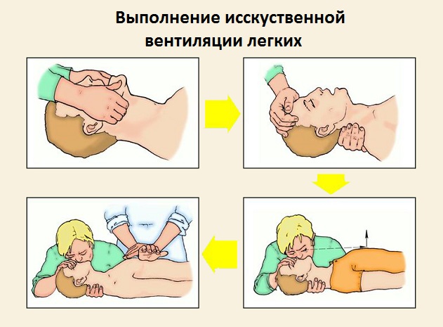 После того как препятствия для искусственного дыхания устранены, следует придерживаться следующего алгоритма: