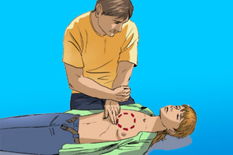Если пациент внезапно потерял сознание, перестал дышать и у него произошла остановка сердца, необходимо выполнять сердечно-легочную реанимацию до приезда врачей: