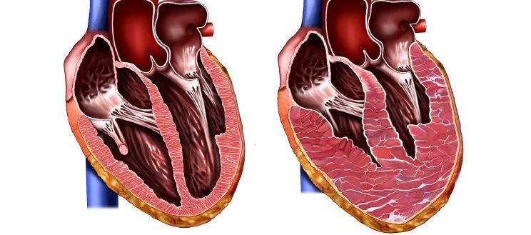 | Кардиомиопатия | Это состояние связано с чрезмерным растяжением сердечной мышцы, что приводит к увеличению объема сердечных камер. |