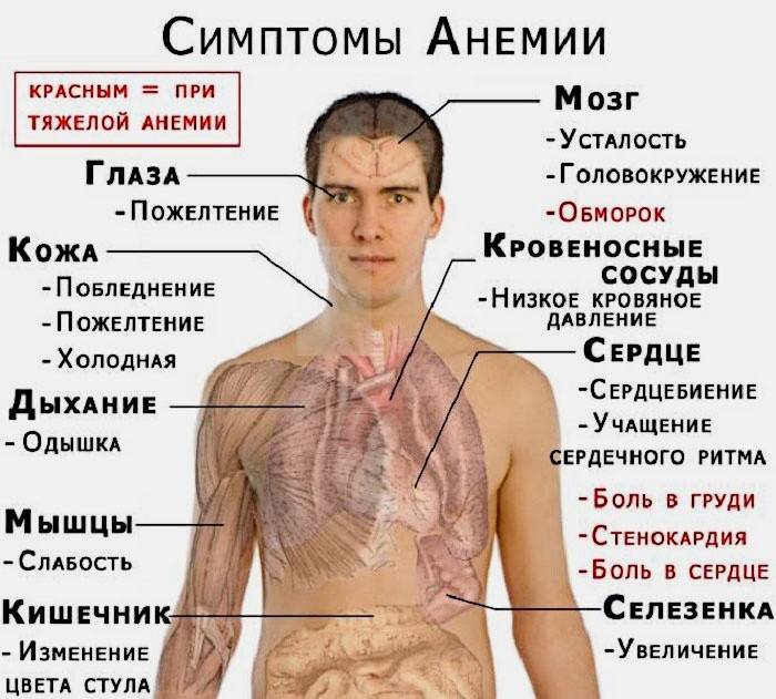 Симптомы и проявления низкого гемоглобина