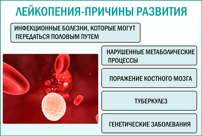 К основным факторам, способствующим снижению уровня лейкоцитов (лейкопении) в крови у взрослых, можно отнести: