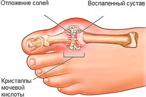 Подагра – это заболевание, возникающее из-за увеличенного уровня мочевой кислоты в организме. Кристаллы этой кислоты оседают в суставах, особенно в области больших пальцев ног, что приводит к воспалению и разрастанию костной ткани. В результате возникают сильные болевые ощущения и затруднения в движении.