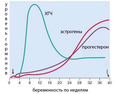С началом беременности основным регуляторным гормоном у женщины становится прогестерон, который на самых ранних этапах вырабатывается желтым телом яичника. ХГЧ при беременности необходим для поддержания функции желтого тела и постоянного увеличения уровня прогестерона, поэтому не удивительно, что желтое тело у беременной женщины не исчезает, как это происходит в обычном менструальном цикле.