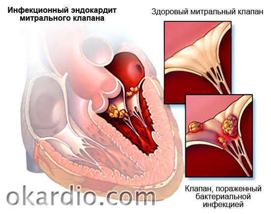 - Риск инфицирования измененного клапана, что может привести к развитию инфекционного эндокардита с образованием вегетаций на створках.