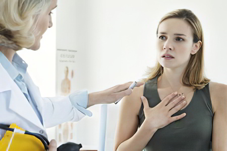 Пульмонологи осуществляют комплексный осмотр пациентов, испытывающих инспираторную одышку. Они измеряют частоту дыхательных движений и сердечных сокращений, а также артериальное давление. В процессе физикального обследования выполняются пальпация и перкуссия грудной клетки, что позволяет определить нижние границы и экскурсию лёгких.