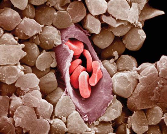 - мембрана красной кровяной клетки теряет способность к растяжению, что приводит к её разрыву;