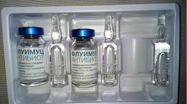 Комбинированное средство с антибактериальным и отхаркивающим свойством. Тиамфеникол обладает широким спектром противомикробного действия, эффективен при стрептококковой, стафилококковой, гемофильной инфекции. Ацетилцистеин – муколитическое средство, уменьшает вязкость слизи, благодаря чему она может эвакуироваться с гайморовой пазухи. Один флакон содержит 500 мг действующего вещества.