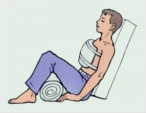 - При серьезных травмах грудной клетки пострадавшего следует разместить в полусидячем положении, под ноги подложив небольшой валик.