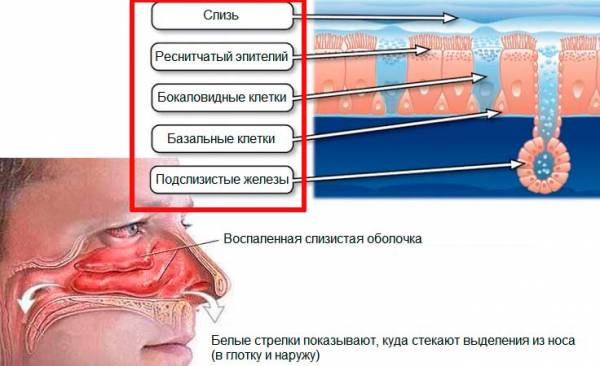 Во время развития ринита назальный секрет дополняется и повышенным объемом муцина. Это сложный гликопротеин, функция которого заключается в захвате патогенной микрофлоры. За счет муцина структура слизи становится вязкой.