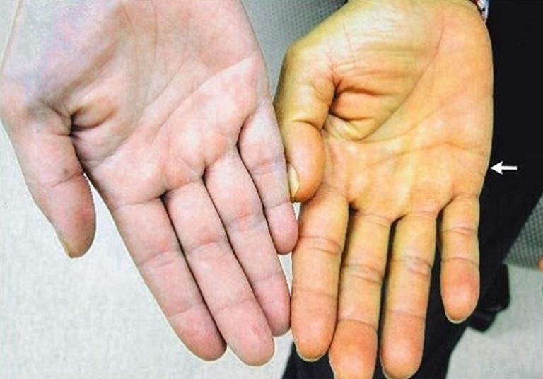 При высоком уровне билирубина кожа приобретает желтоватый оттенок.