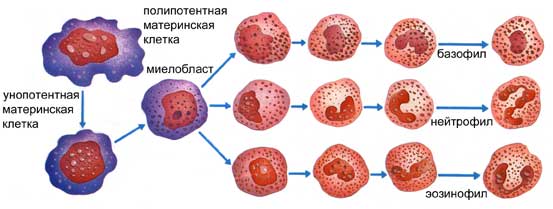 - Зернистые клетки, содержащие гранулы в цитоплазме. К ним относятся нейтрофилы, эозинофилы и базофилы.