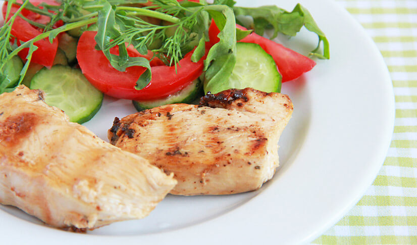 куриная грудка (150 г), запеченная в фольге или вареная на пару;