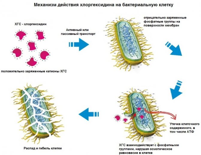 Хлоргексидин разрешено использовать во время беременности, так как активное действующее вещество оказывает разрушающий эффект на оболочку болезнетворных клеток, что приводит к изменению их структуры и дальнейшему уничтожению.