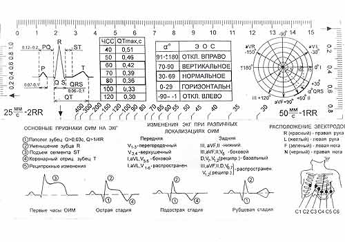 Существует множество различных справочных пособий, которые призваны облегчить анализ и расчет элементов ЭКГ. Одно из них представлено на рис. 27.