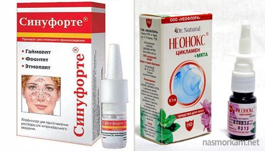 Лекарства, изготовленные из экстрактов и масел целебных растений, хорошо работают в комплексной терапии всех видов синусита. Список самых известных представителей этой группы: