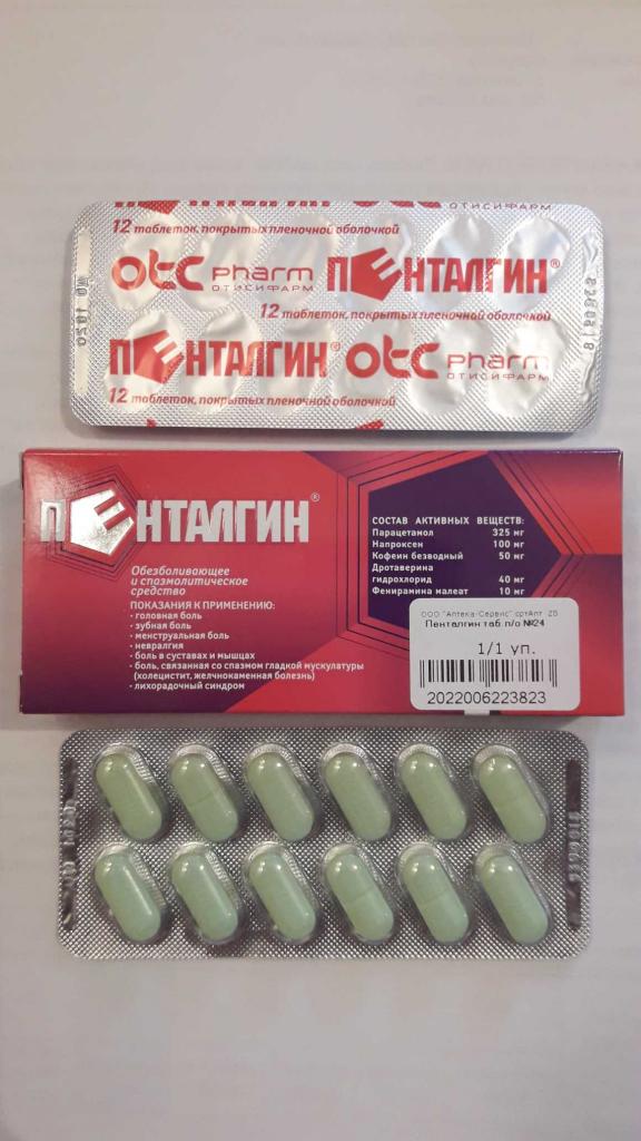 Классический состав «Пенталгина» включает следующие ингредиенты: