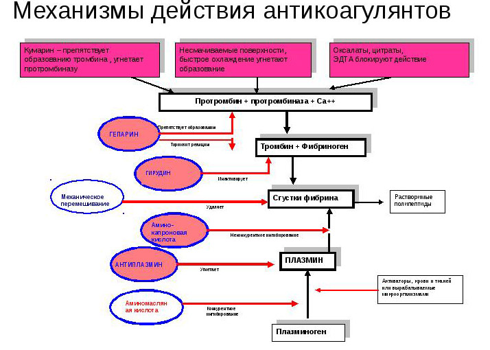 Существует несколько механизмов взаимодействия антикоагулянтов с другими препаратами: