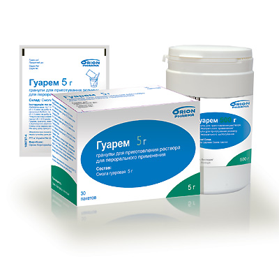 Гуарем доступен в форме гранул, которые нужно добавлять в жидкость (вода, сок, молоко). Рекомендуется сочетать его прием с другими средствами, направленными на борьбу с атеросклерозом.