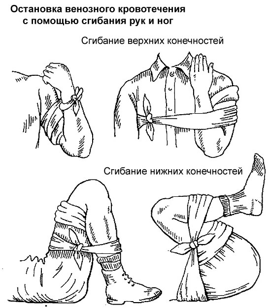 При сгибании конечностей создается достаточное давление на поверхностные вены, что позволяет остановить кровотечение.