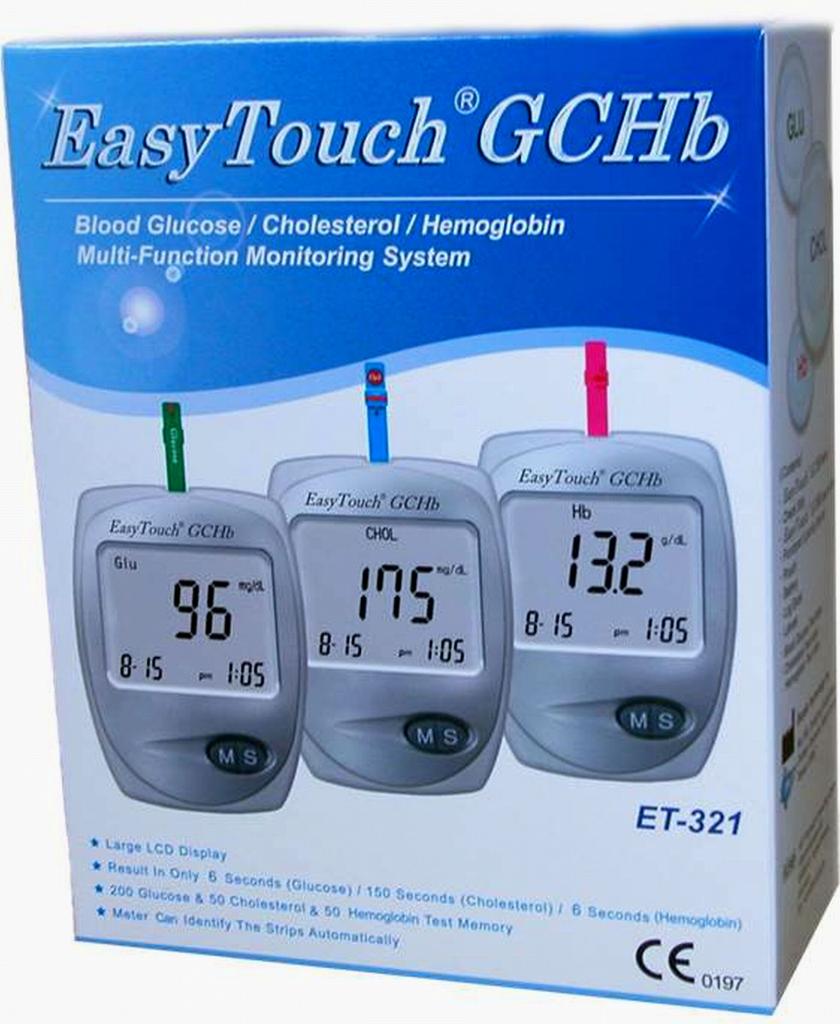 EasyTouch GcHb – это популярный анализатор, который позволяет проверять три ключевых показателя: уровень холестерина, глюкозы и гемоглобина. Он находит применение как в медицинских учреждениях, так и в домашних условиях. Прибор производится на Тайване и выполнен из серого пластика, оснащен большим дисплеем. Его размеры составляют 88 х 64 х 22 мм, а вес – 60 г. Устройство может запоминать до 300 измерений, а время, необходимое для анализа, составляет 2,5 минуты для холестерина и всего 6 секунд для глюкозы и мочевой кислоты.