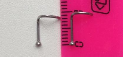подразумевает ношение серьги, напоминающей штанге, на одном конце которой расположен камушек, а второй представляет собой крючок. Прокалывать нос в данном случае не так больно, как в предыдущем. Сужение носовых проходов является противопоказанием к данному виду пирсинга. - Прокалывание переносицы