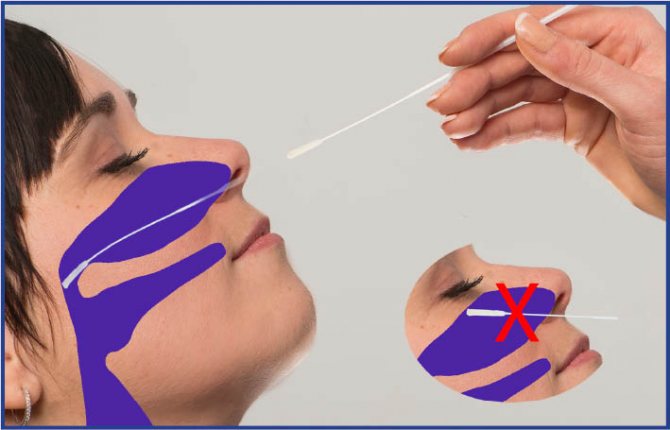 - Вводит ее аккуратно к заднему отделу нижней носовой раковины и легким движением соскребает слизь.