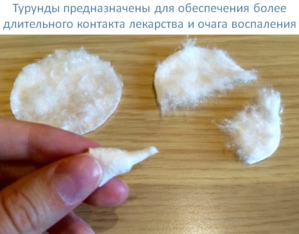 - В подготовленном составе смочить две ватные турунды. Заложить пинцетом в каждую ноздрю.