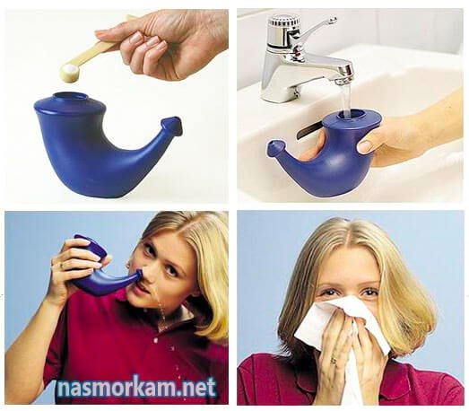 Промывания носа приспособлениями являются наиболее эффективным комплексным лечением. Благодаря ей слизистая оболочка освобождается от выделений, корочек, микроорганизмов, что вызывает снижение отечности, воспаления.
