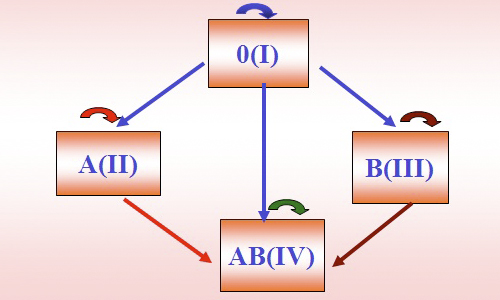 (для обозначения групп используются латинские буквы A и B (антигены), цифра 0 (означает отсутствие антигенов) и римские цифры).