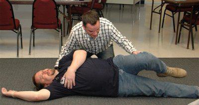 Если помощь оказывает один человек, он должен делать 15 нажатий на грудную клетку после каждых двух вдохов. В случае, если помощь оказывают двое, один спасатель делает вдохи, а второй выполняет пять нажатий на грудную клетку после каждого вдоха.